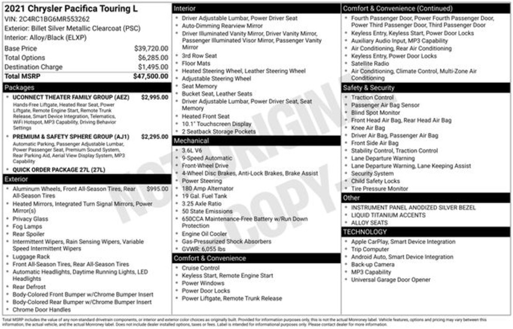 With its exceptional versatility, cutting-edge technology, and uncompromising style, this 2021 Chrysler Pacifica Touring L is the ultimate family vehicle. Experience the difference for yourself and schedule a test drive today. We're confident this Pacifica will exceed your expectations and become the perfect companion for your next adventure.